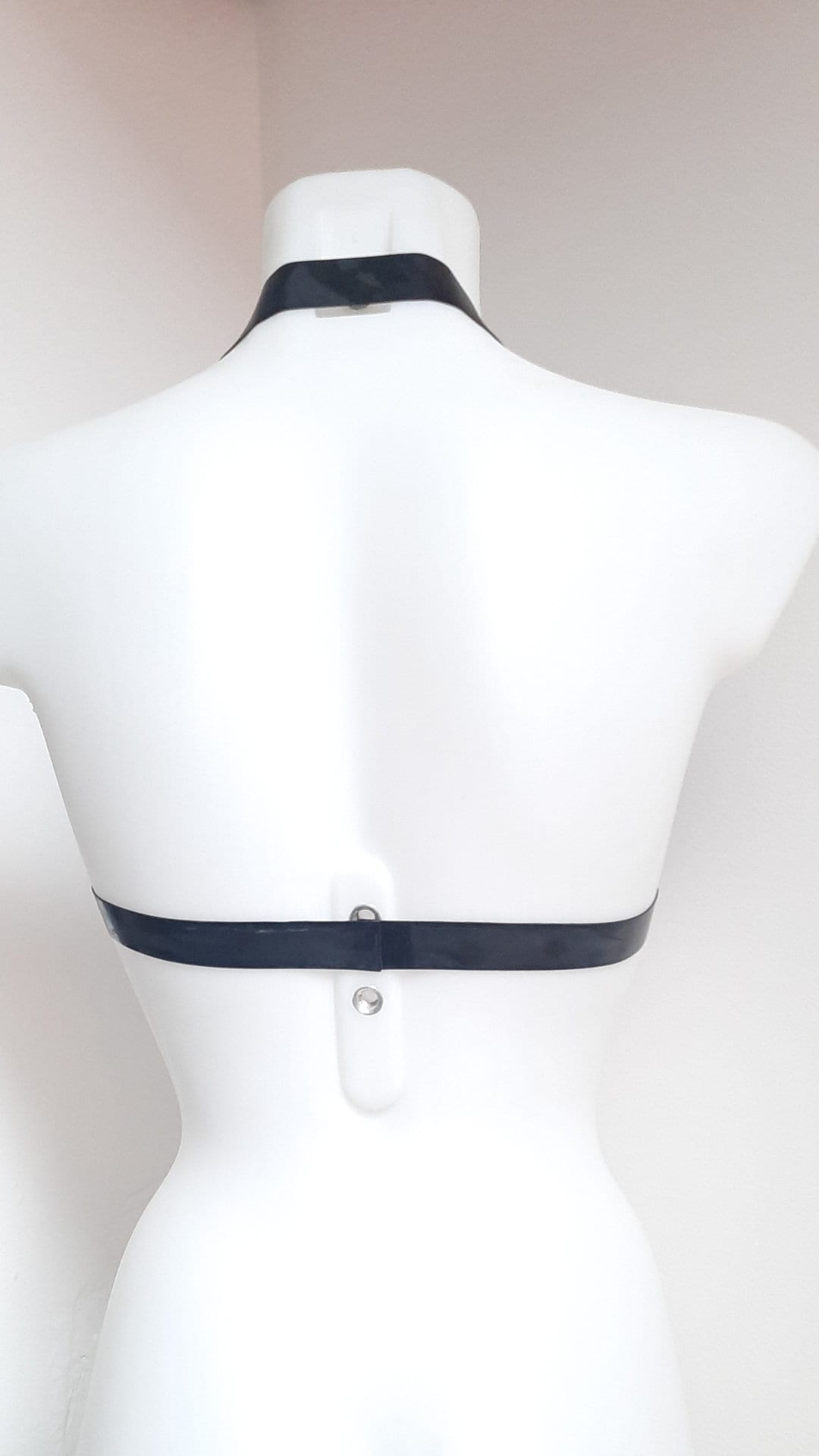 This latex colour is amazing!! Colour changing from purples into blue depending on the light, made into my classic Latex O ring, soft cup halter bra top.