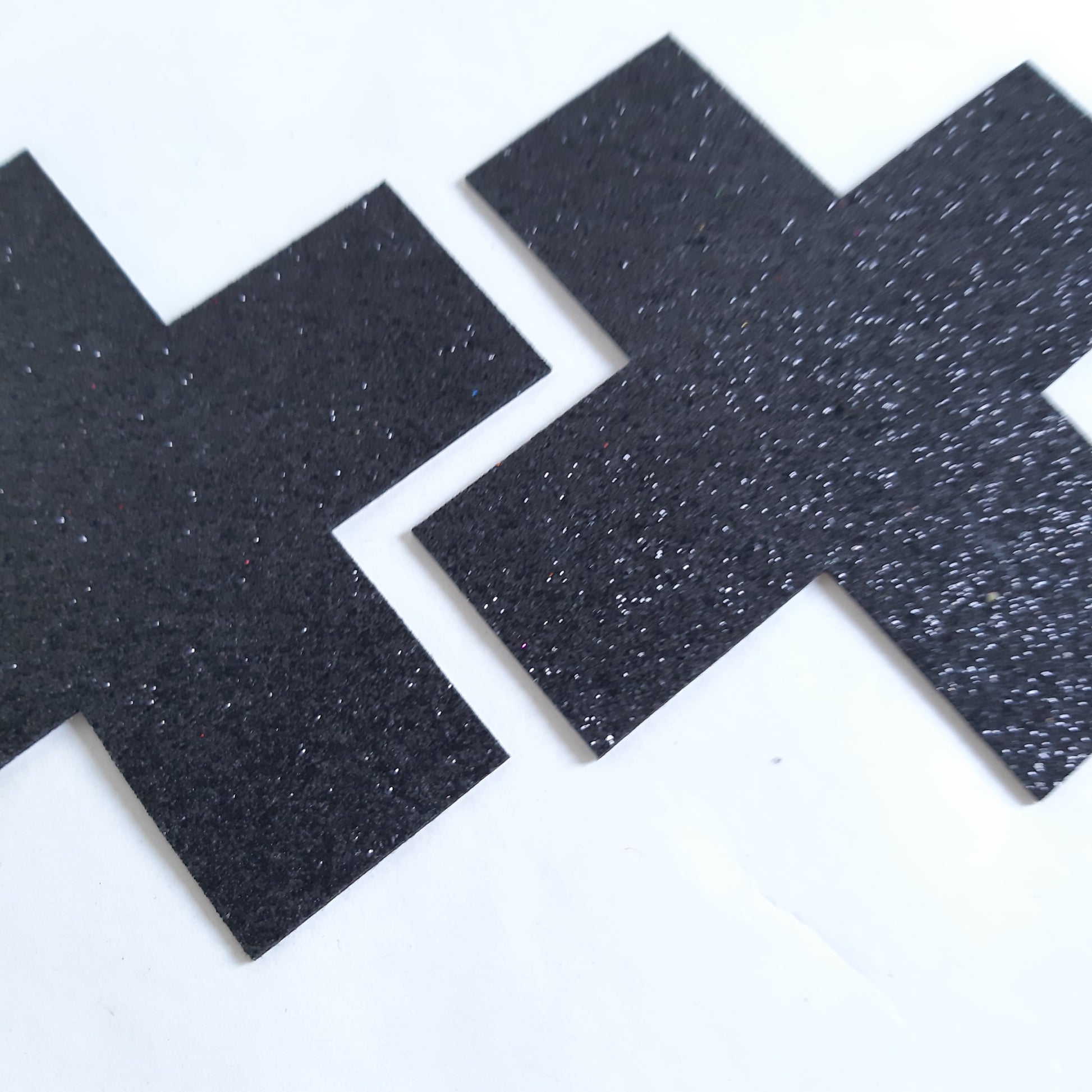 Cross X shaped nipple pasties, THE perfect way to add sparkle whilst keeping those nipples covered. They are, 10cm x 10cm with a center coverage of 5/6cm. 12 beautiful glittery & sparkly colours to choose from.