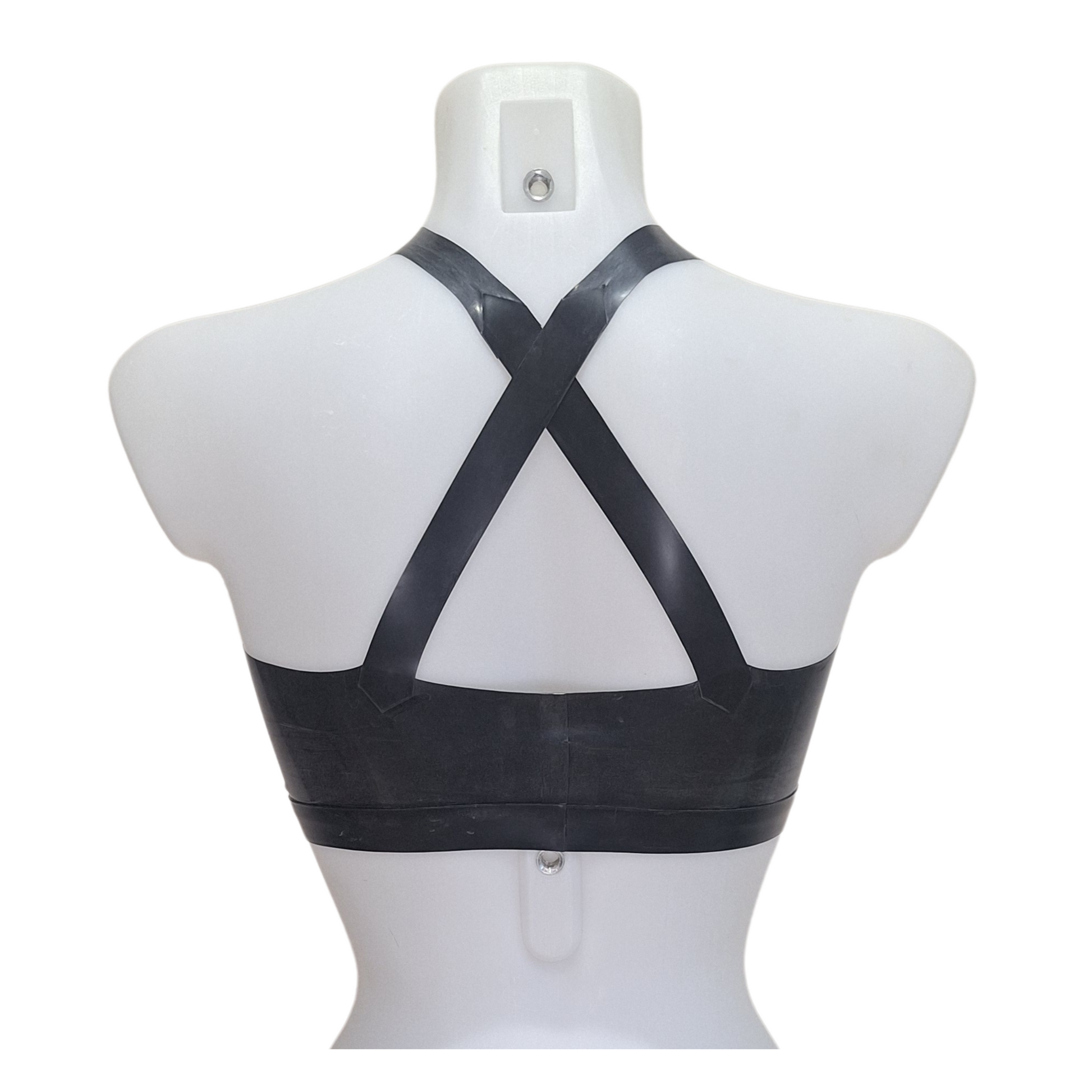 Latex cross front crop top.