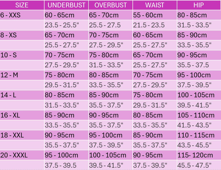 All items are available in XXS to XXL please look at the size chart for measurements. Find the colour choices here
