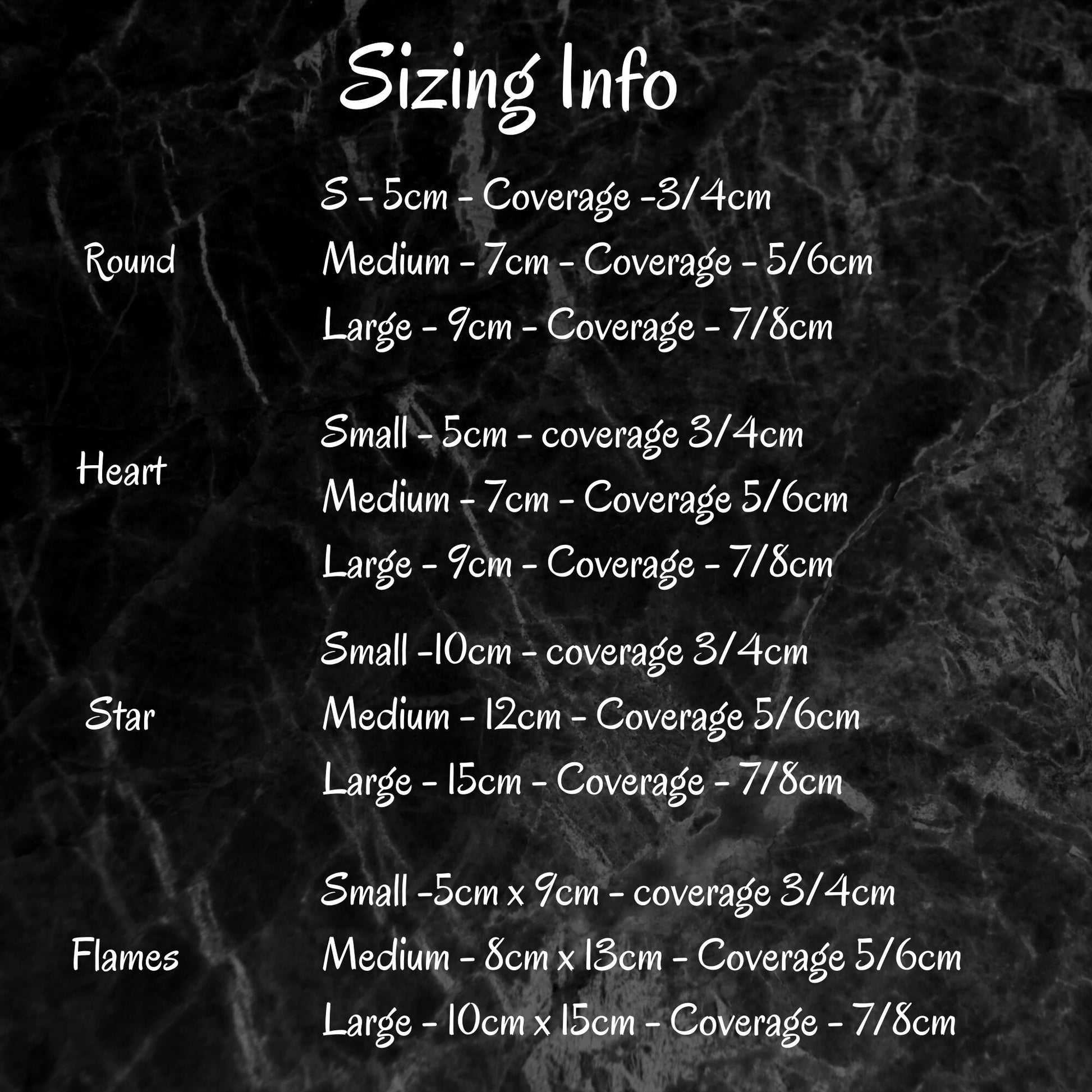 These have an overall width of 9.5cm x 9.5cm and a nipple coverage area of around 5cm
