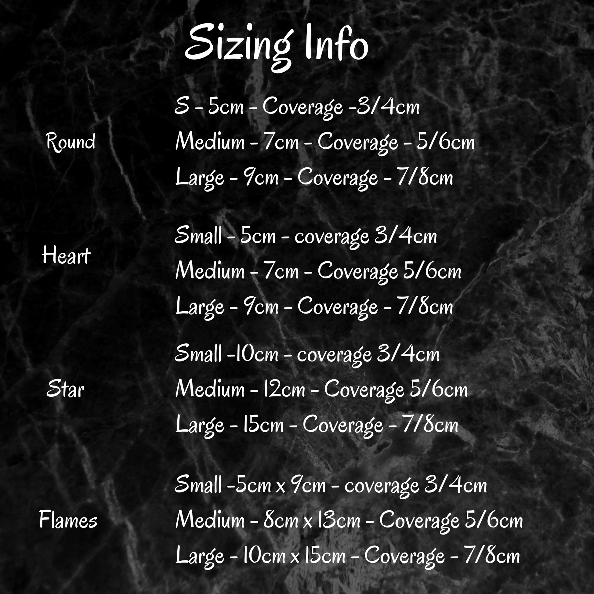 These have an overall width of 9.5cm x 9.5cm and a nipple coverage area of around 5cm