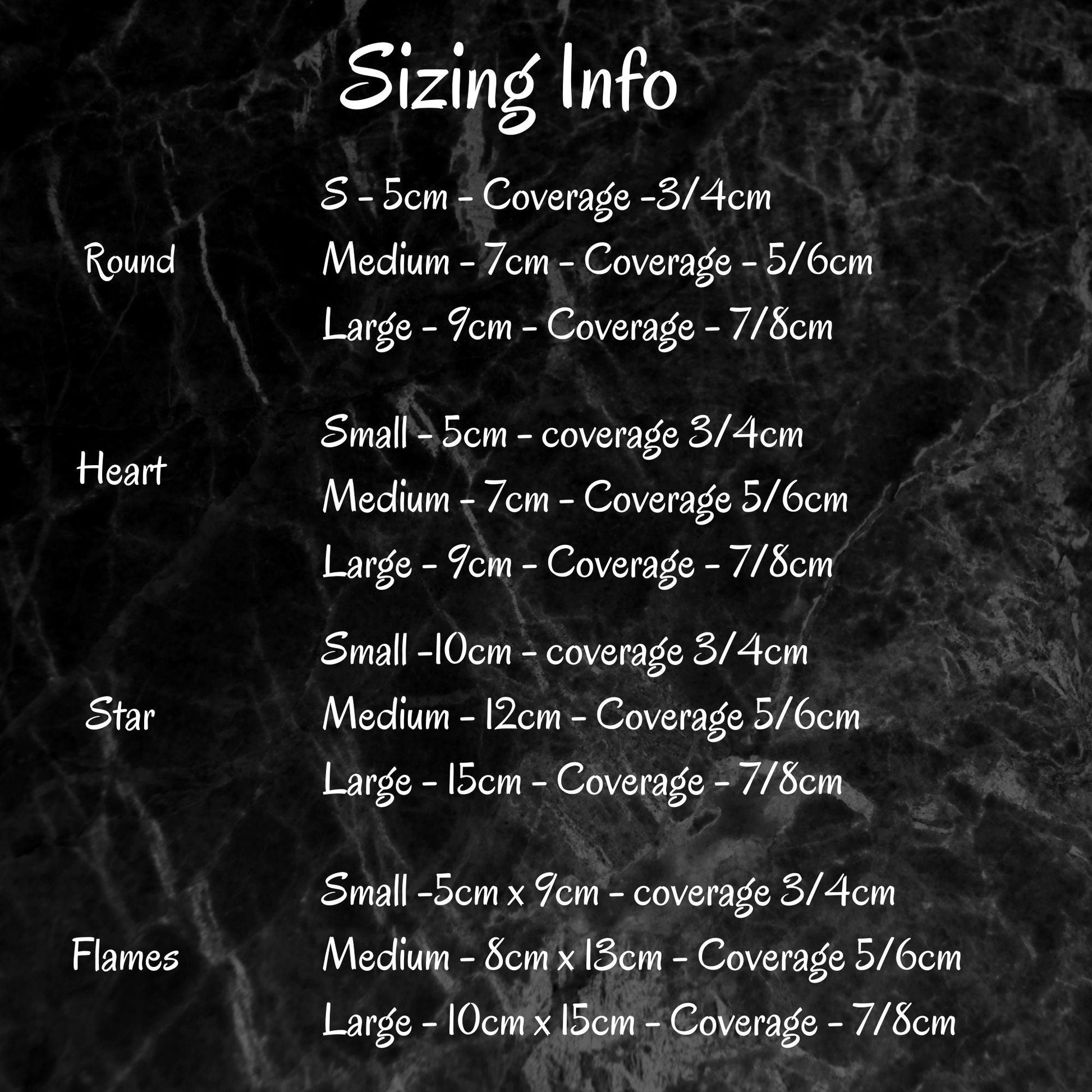 The sizing is the nipple coverage in the middle of the star, minus the pointed ends