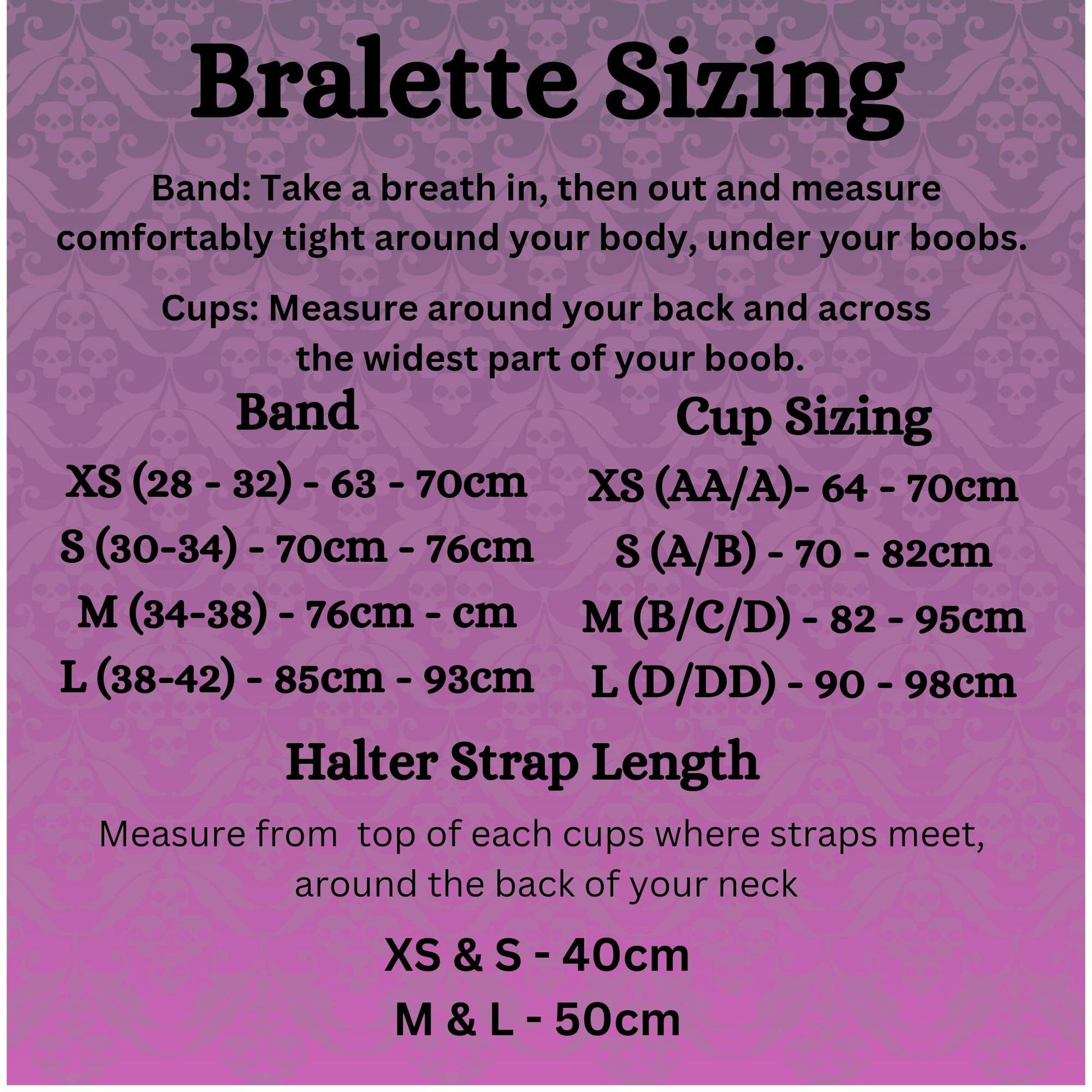 All items are available in XXS to XXL please look at the size chart for measurements. Find the colour choices here