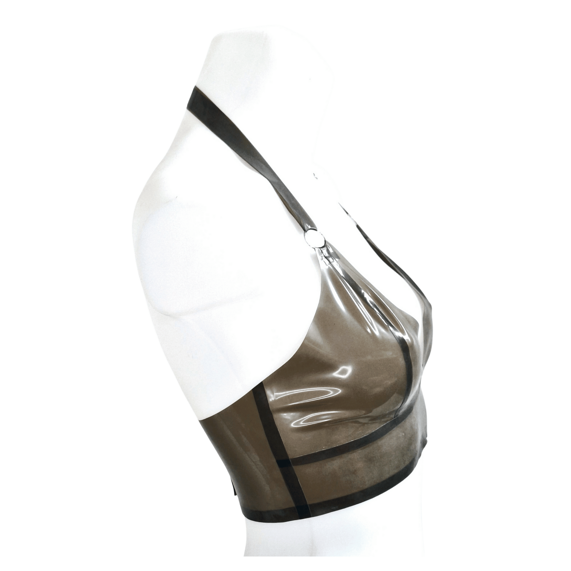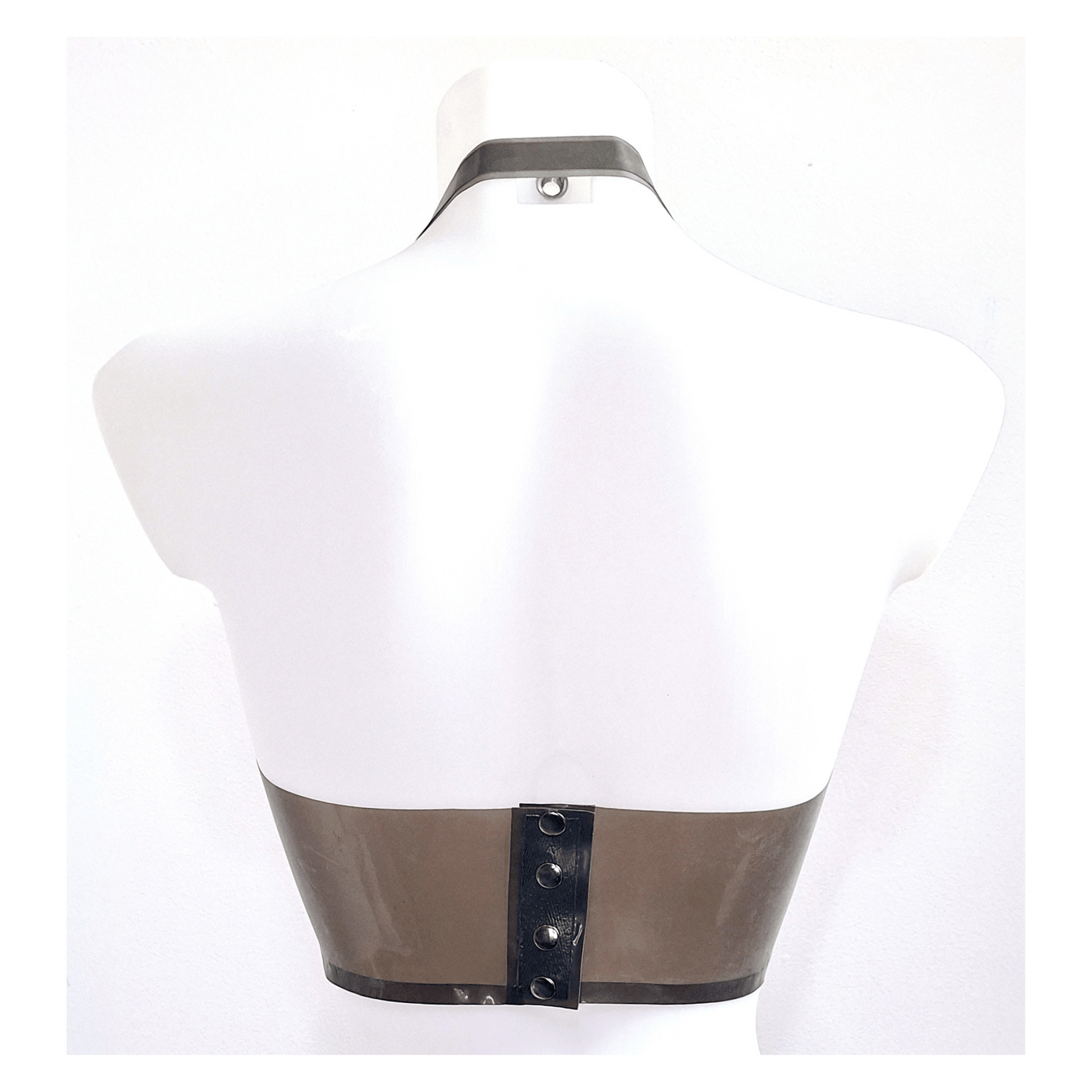 Introducing the semi transparent smoke black latex longline bralette and skater skirt set - the perfect combination of edgy and stylish. This set is made to order and comes in sizes XS to XL, ensuring a comfortable and flattering fit making them a versatile addition to any wardrobe.